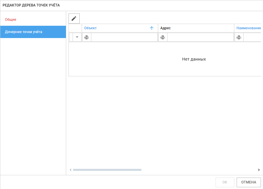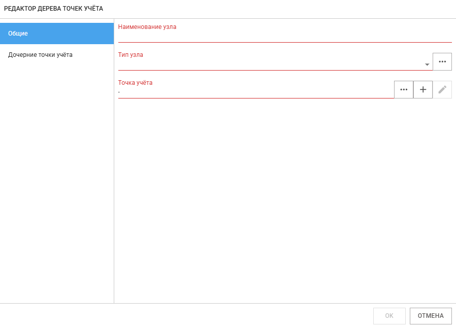 - Точка учёта – родительская точка выбранного узла дерева, выбирается из справочника, либо можно создать новую.